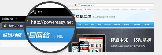 而動(dòng)易多屏優(yōu)化技術(shù)是跨pc和移動(dòng)設(shè)備的技術(shù),可實(shí)時(shí)維護(hù)、用戶(hù)無(wú)需頻繁下載,只需要打開(kāi)所需網(wǎng)址,網(wǎng)站便可自動(dòng)根據(jù)用戶(hù)設(shè)備進(jìn)行界面的匹配。
