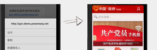 現(xiàn)如今,我們?cè)絹?lái)越多的會(huì)通過(guò)短信、微信或者郵件分享一個(gè)產(chǎn)品鏈接、一條有趣的新聞,而當(dāng)我們點(diǎn)擊這些鏈接打開(kāi)時(shí),如果是其他技術(shù),在手機(jī)中顯示的就是原pc界面,而多屏優(yōu)化后就顯示專(zhuān)為手機(jī)優(yōu)化的界面,實(shí)現(xiàn)全時(shí)優(yōu)化。