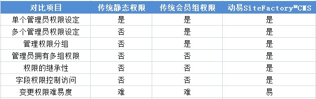 動(dòng)易SiteFactory? CMS 正是一套以面向政府、事業(yè)單位、企業(yè)等領(lǐng)域?yàn)殚_(kāi)發(fā)對(duì)象的企業(yè)級(jí)內(nèi)容管理系統(tǒng),它采用的就是基于標(biāo)準(zhǔn)RBAC模型(角色)的訪(fǎng)問(wèn)控制方法。如下圖所示,傳統(tǒng)權(quán)限與動(dòng)易SiteFactory? CMS角色的對(duì)比圖: